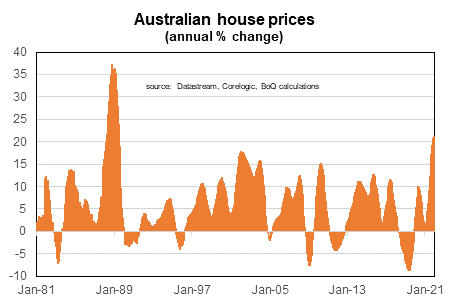 The momentum of house price growth slowed over the final four months of 2021. This makes it likely that growth in 2022 will be comfortably below the pace seen last year. The expectations of slower growth reflects the possibility/likelihood of rising interest rates, weak demand from slow population growth, rising supply of new houses and the potential for some further tightening of bank lending standards. There are risks that house prices may decline sometime for a period around 2024. More generally, past 2022 we are likely to be in for a run of years of less rapid house price growth.