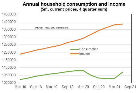 The trend rise in software spending (and IT more generally) has a lot further to run. Software spending in the US is twice as big (relative to the size of GDP) as it is in Australia. Another reason is that the rate of online spending in Australia is less than half of what spent in China and the UK.