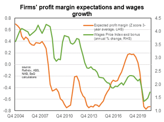 In recent years workers have not been expecting big pay rises, partly reflecting a period of low inflation. That could change if prices go up at a 3%-plus for an extended period. Firms’ expectations about profit margins have also been pretty subdued in recent years, leaving them little room to pay higher wages. But sustained strong demand may again lead to firms becoming very comfortable about the profit outlook. One reason why profit margins have narrowed in recent years has been an extended period of weak productivity growth. But it looks like we are in for a run of strong business investment. And that should lead to a bounce in productivity growth in coming years.
